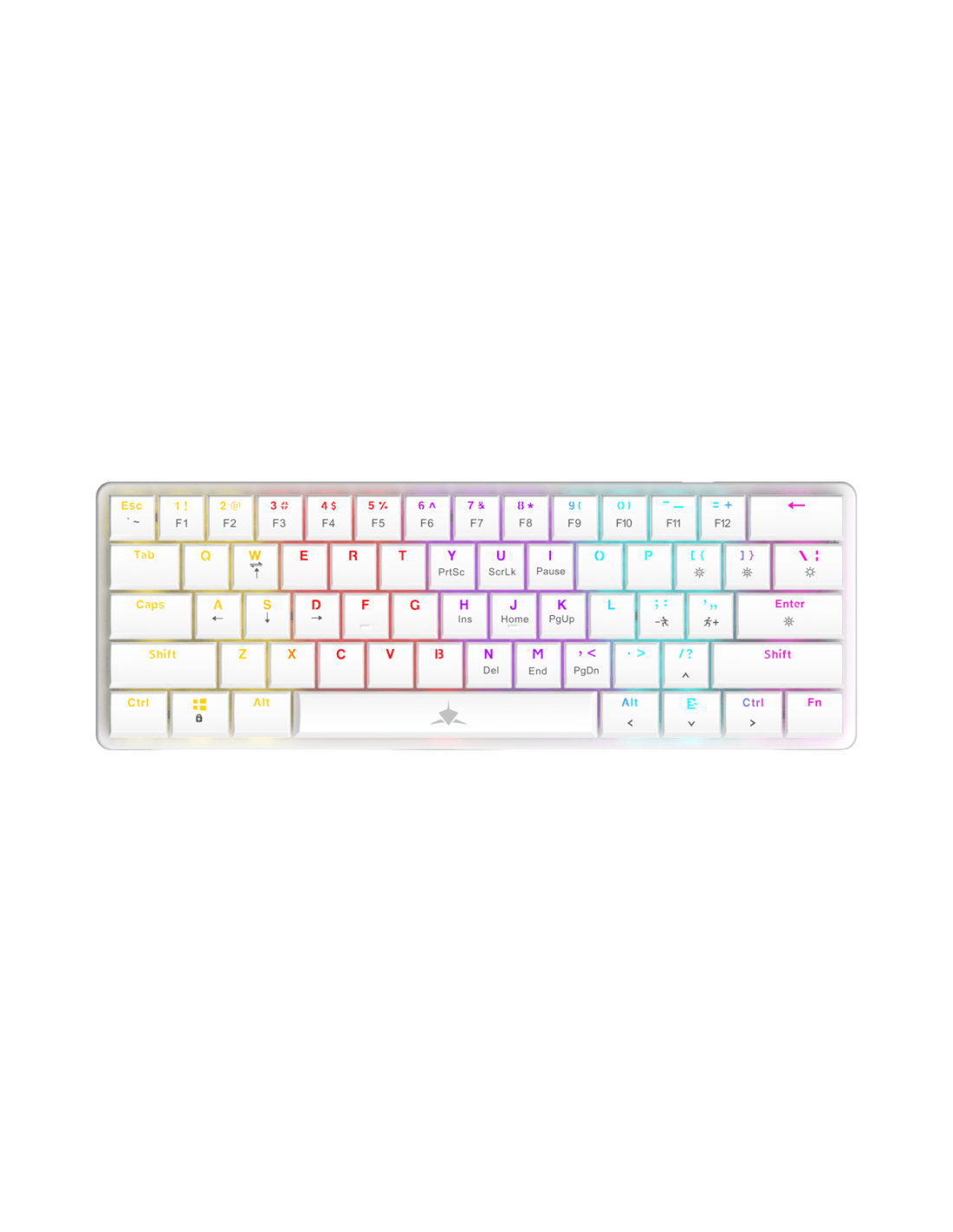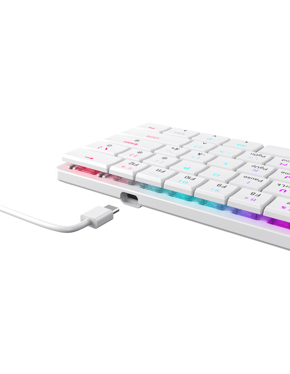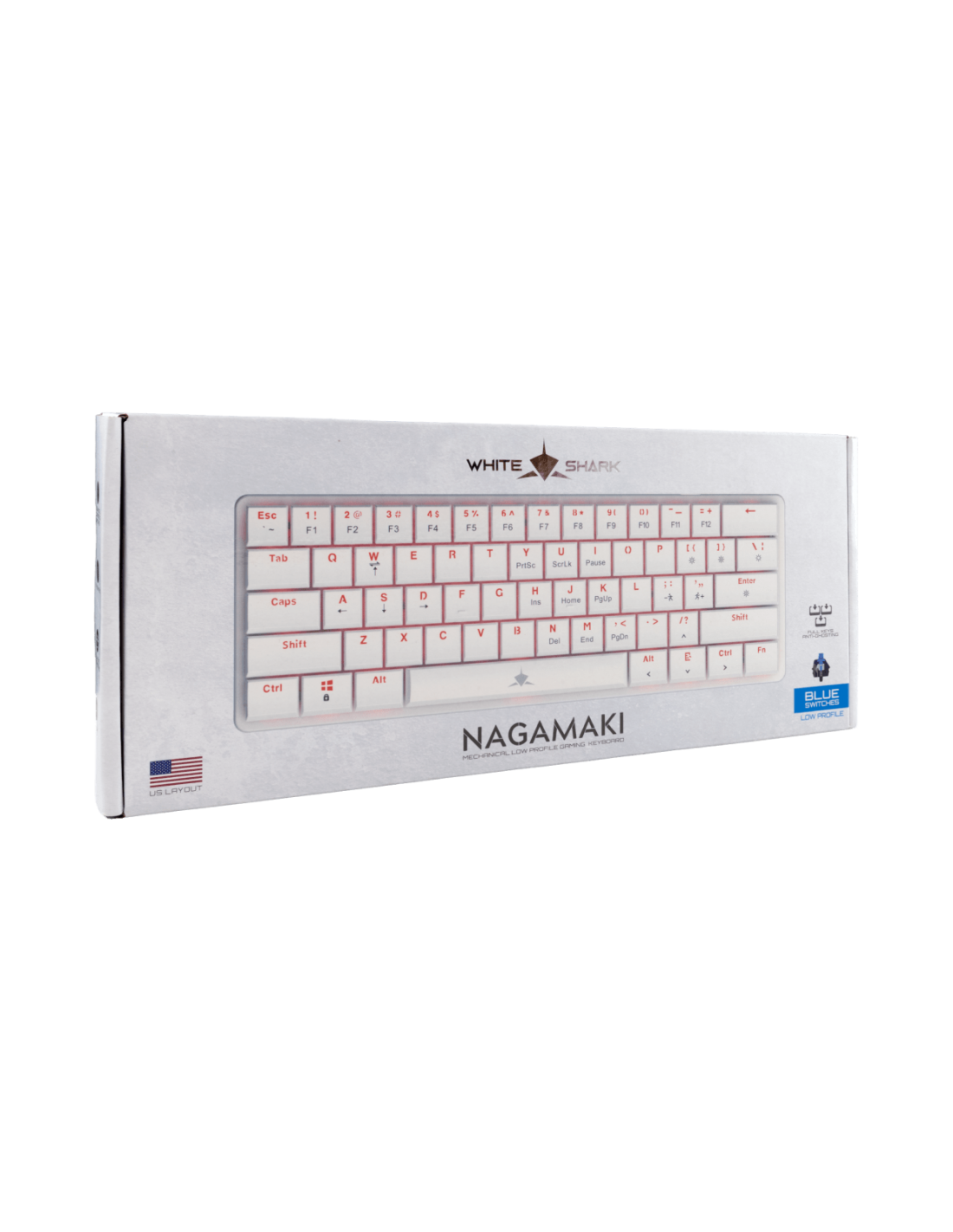 Compact yet powerful, the White Shark NAGAMAKI gaming keyboard combines a sleek low-profile mechanical design with full anti-ghosting for precision gameplay. With rainbow illumination and 19 effects, it adds flair to your setup. Lightweight and durable with over 50M key presses, it's built for gamers on the go.