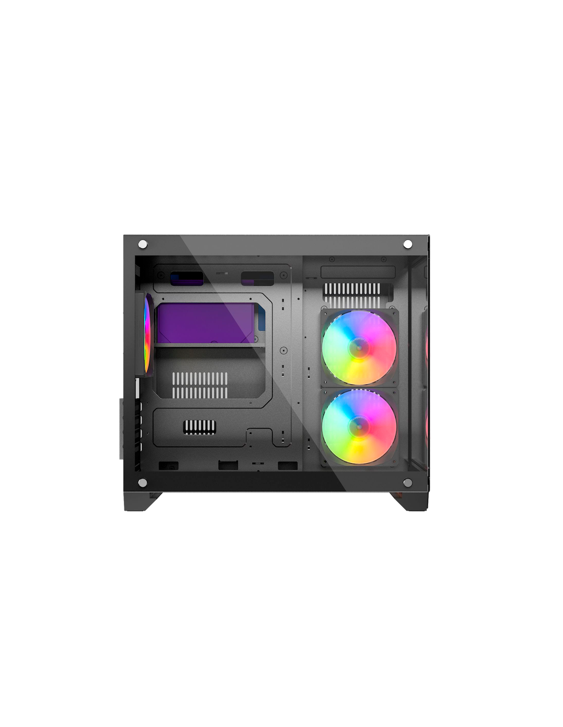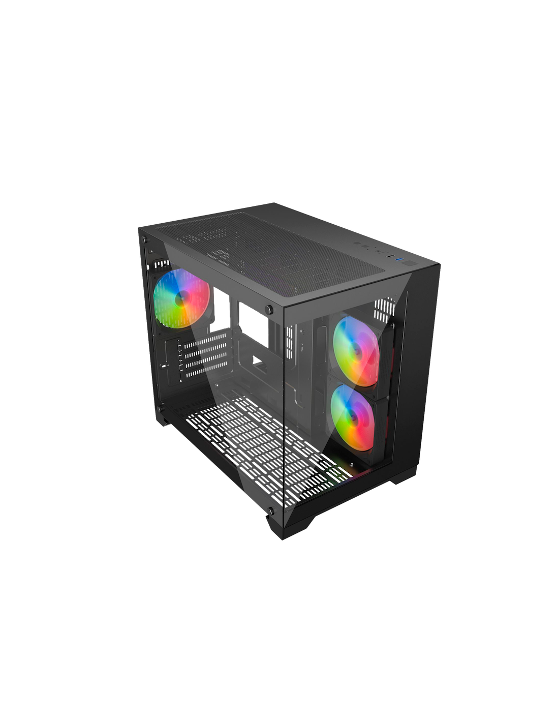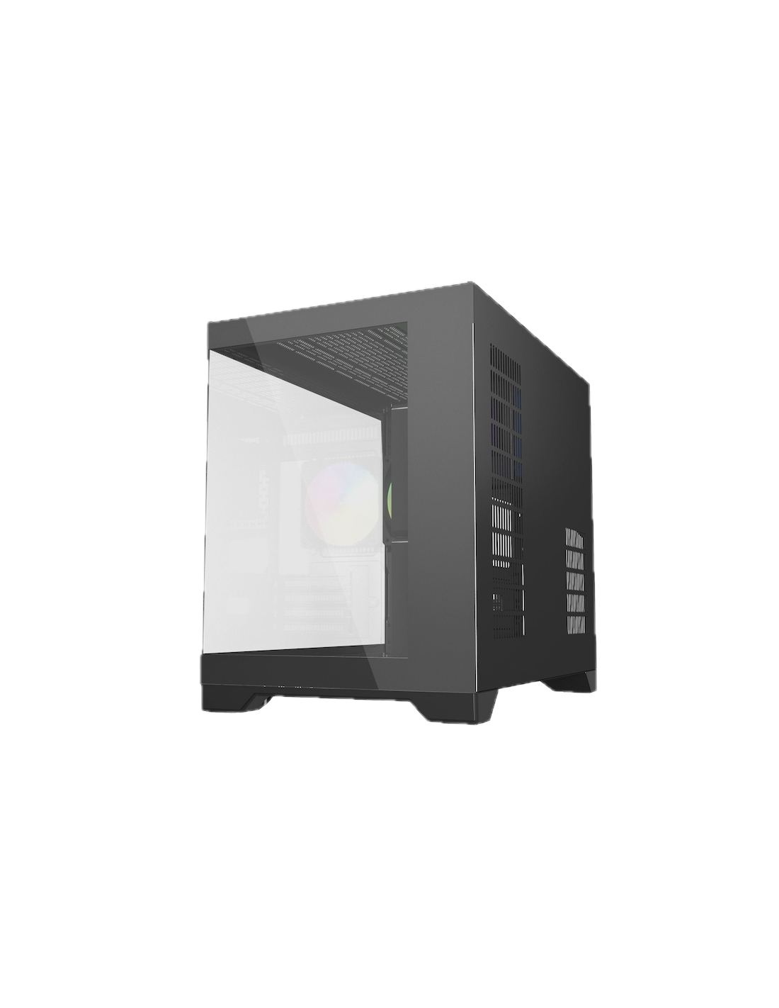 Découvrez le boîtier i600 Micro ATX Gaming ARGB ! Son design frameless avec panneaux en verre trempé à l’avant et sur le côté met en valeur l’éclairage ARGB de votre configuration. Préinstallé avec des ventilateurs ARGB, il offre un flux d’air optimisé grâce à ses ventilateurs à pales inversées et un entretien facile grâce aux filtres magnétiques amovibles. Élégant, performant et pensé pour les gamers exigeants, ce boîtier combine style et fonctionnalité.