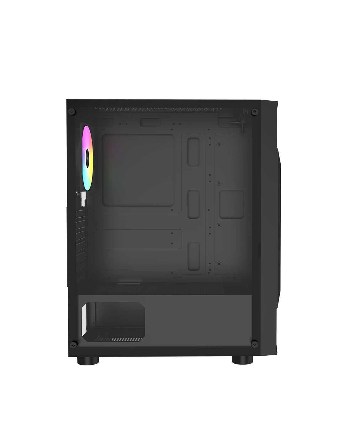 Le V158 allie performance et style pour les gamers exigeants. Son panneau avant en mesh maximise le flux d’air pour un refroidissement optimal, même lors de sessions de jeu intenses. Quatre ventilateurs RGB statiques préinstallés (3 à l’avant, 1 à l’arrière) offrent des effets lumineux captivants qui subliment votre configuration. Avec ses panneaux en verre trempé et ses filtres faciles à nettoyer, le V158 garantit un entretien simple tout en protégeant vos composants et en prolongeant leur durée de vie.