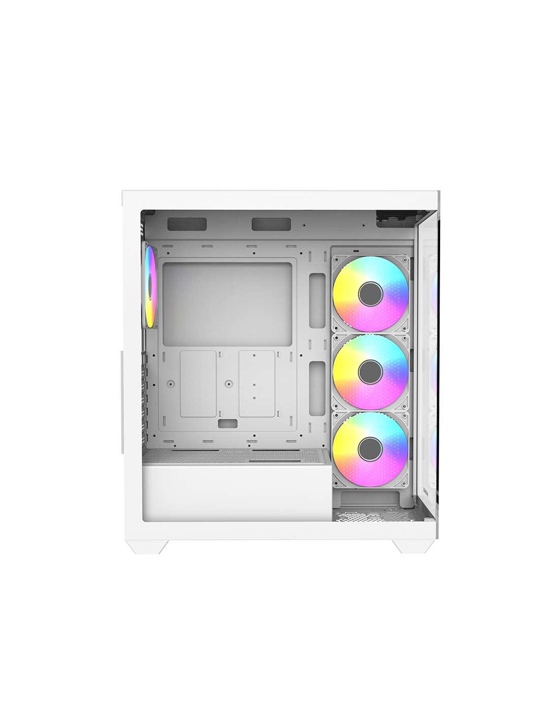Le i800 révolutionne l’expérience gaming avec son design frameless et ses panneaux en verre trempé double face, offrant une visibilité totale sur l’intérieur de votre configuration. Son système de ventilation avancé inclut un ventilateur ARGB 360 mm sur le côté et un ventilateur ARGB 120 mm à l’arrière, optimisés grâce aux pales inversées pour un flux d’air maximal. Facile à entretenir grâce aux filtres magnétiques supérieurs et à son panneau latéral amovible sans outil, le i800 allie style, puissance et praticité pour les gamers souhaitant exposer leur setup avec élégance.